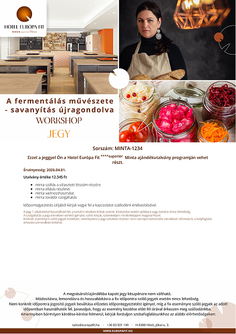 Részvétel a 2026. május 9-én 10:00 órakor kezdődő "A fermentálás művészete - savanyítás újragondolva" workshopon 1 fő részére Hévízen a Hotel Európa Fit****superior FitKitchen élménykonyhájában.